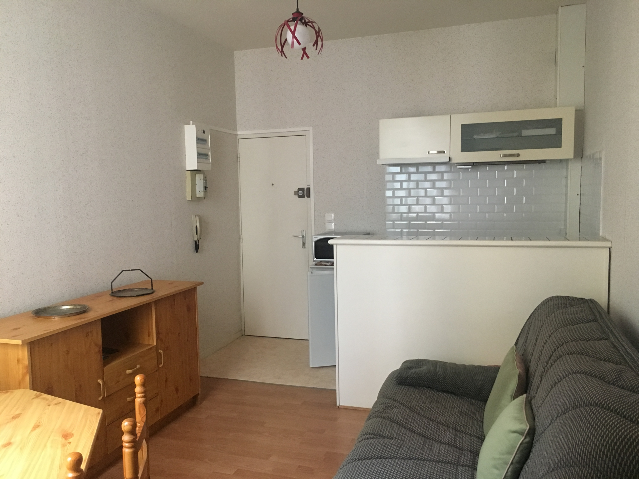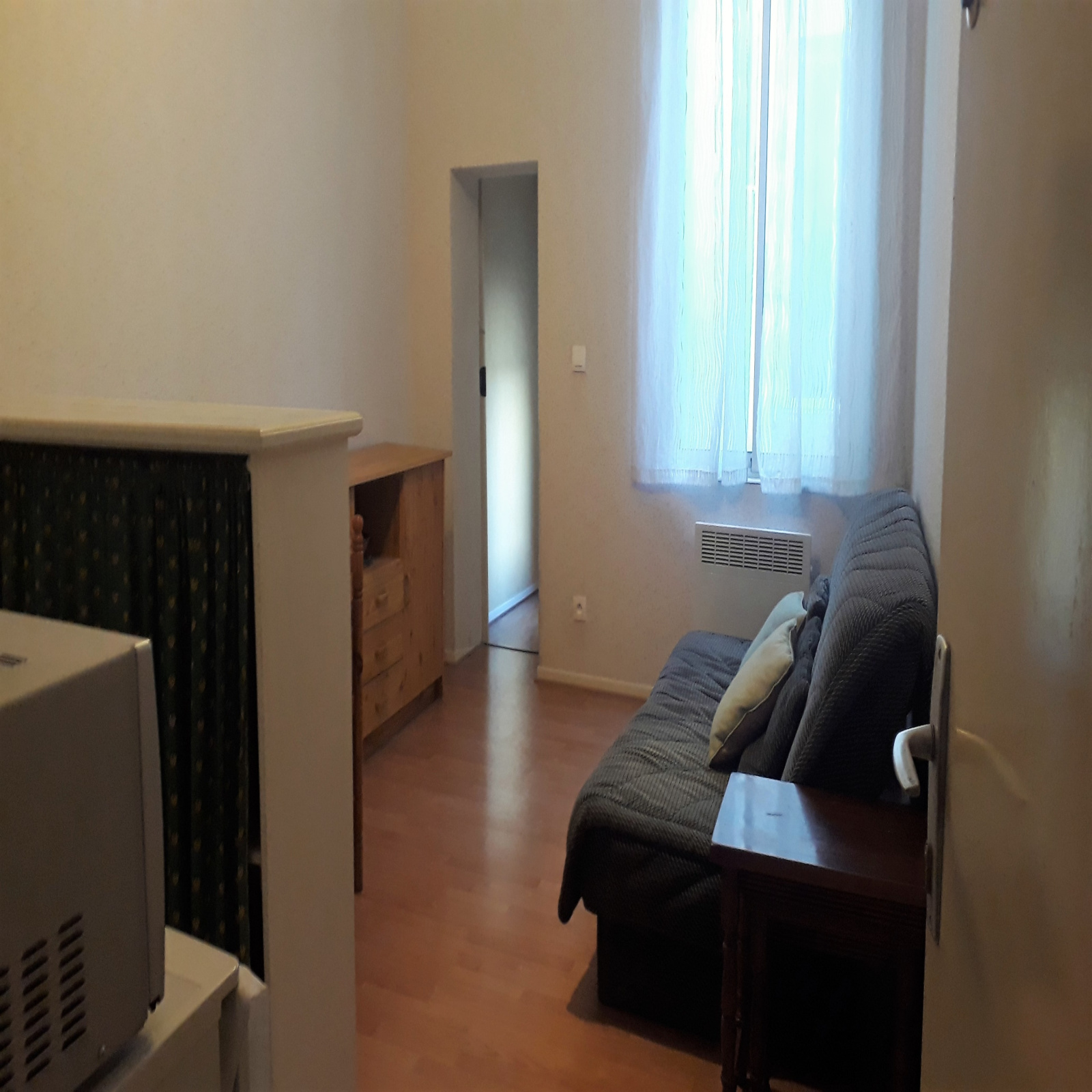 Au 1er étage d'un immeuble pierre, T2 meublé d'environ 37 m² composé d'un séjour avec une cuisine ouverte aménagée et équipée, une chambre avec une salle de bains attenante et une buanderie/dressing, un wc séparé.
