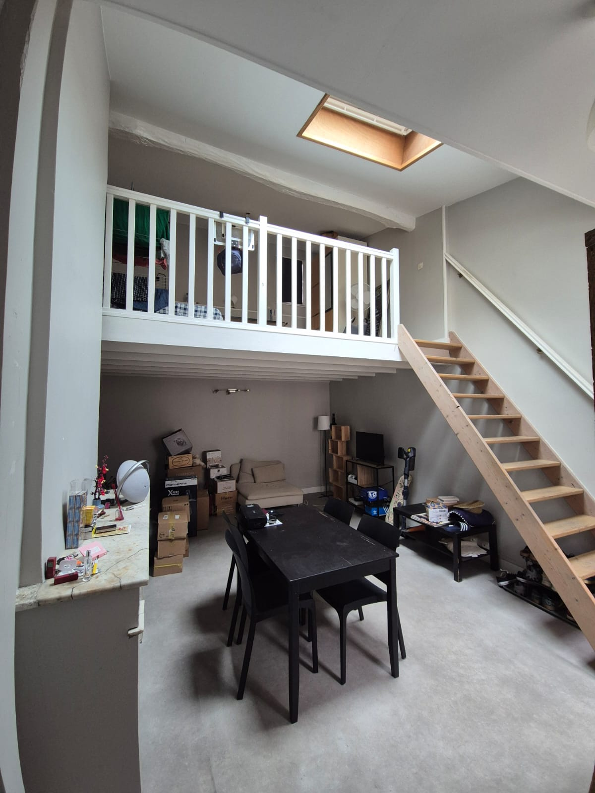 Dans un immeuble en pierre, au 2ème étage, un appartement T2Bis meublé d'environ 38m² se composant d'un séjour, d'une chambre en mezzanine, d'un coin cuisine équipé, d'une salle d'eau avec WC et d'un cellier.