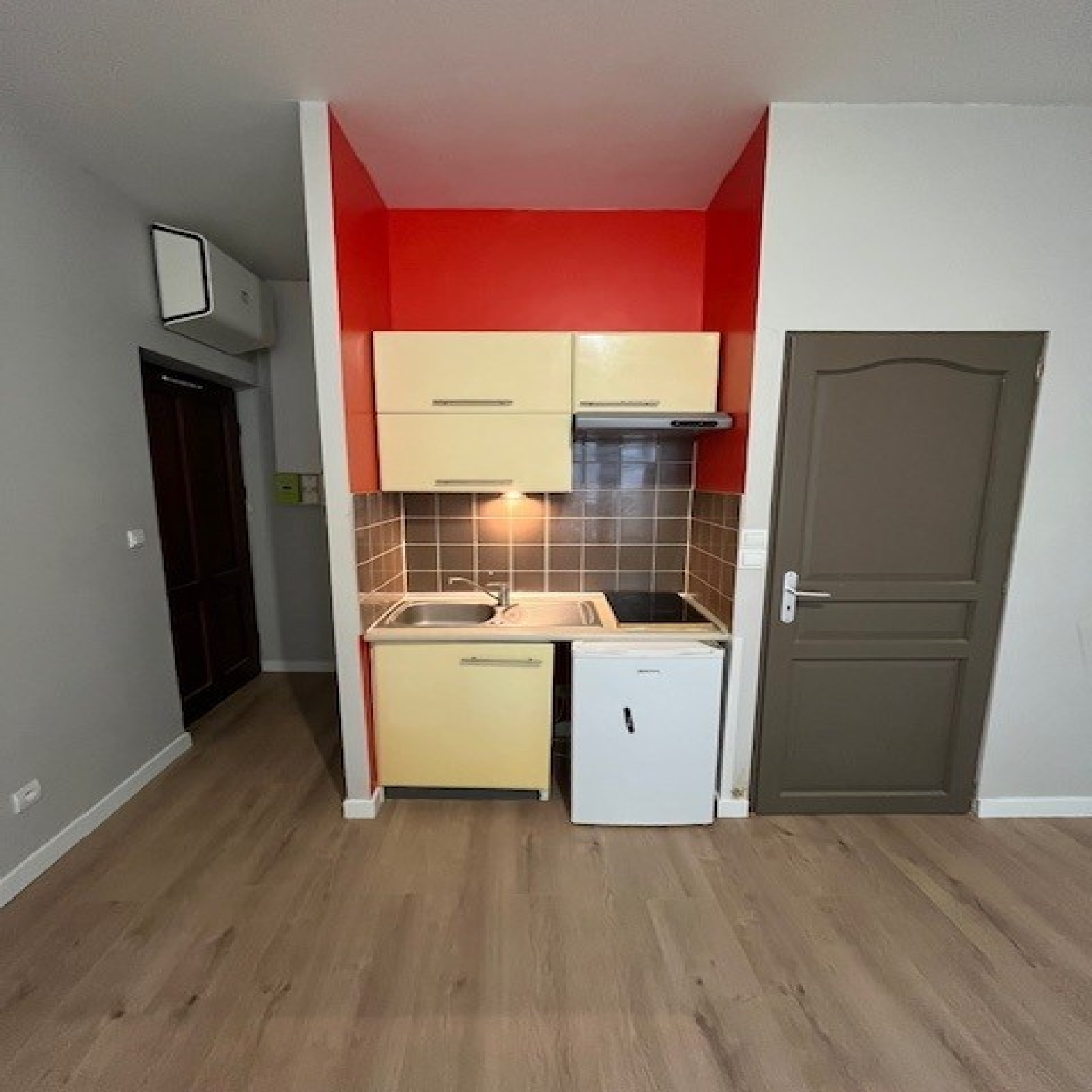 Cours de la Marne, proche toutes commodités, au 1er étage d'un immeuble en pierre, agréable T1 de 17 m² environ comprenant une pièce de vie, une kitchenette équipée (frigo+plaques+hotte), une salle de bains et wc séparé.