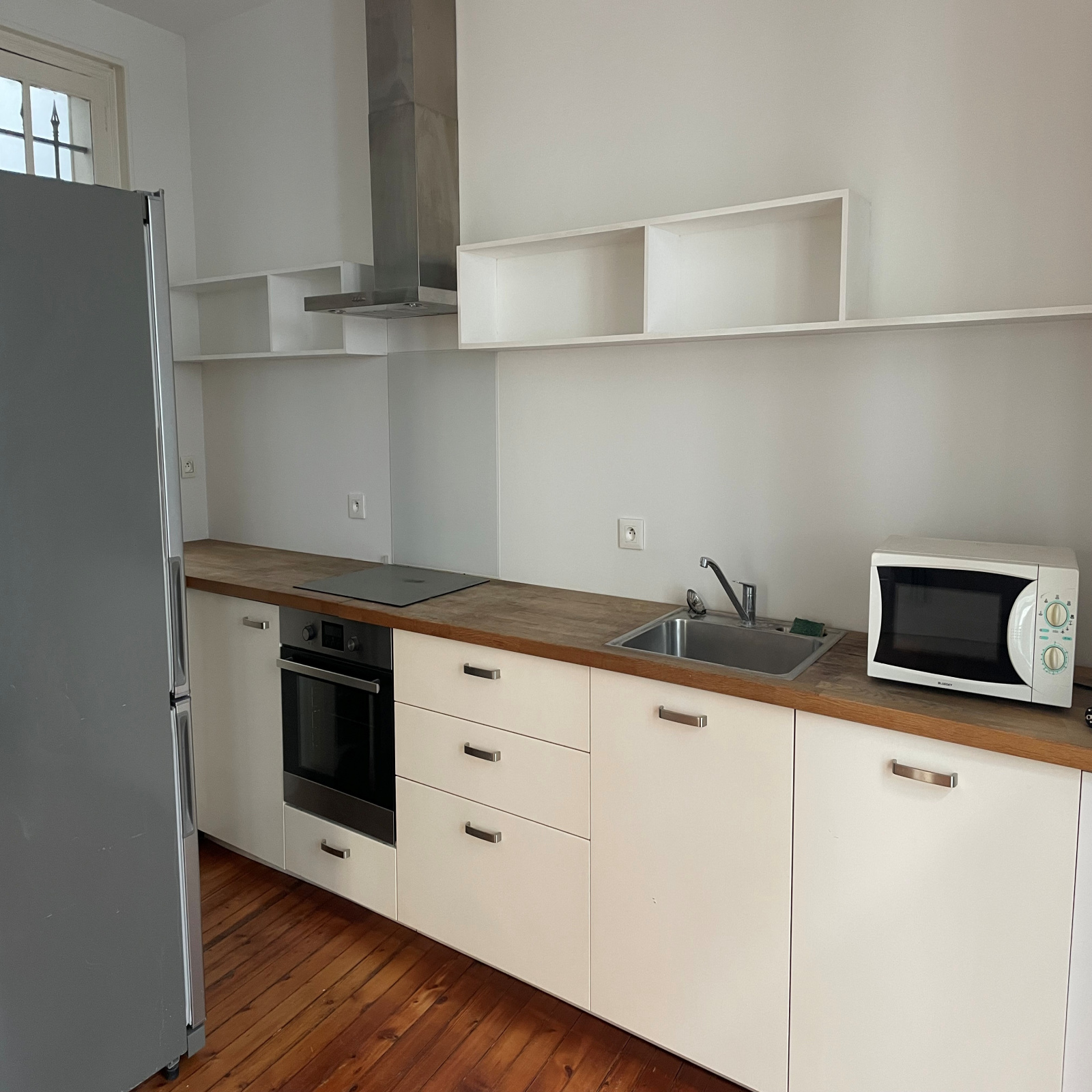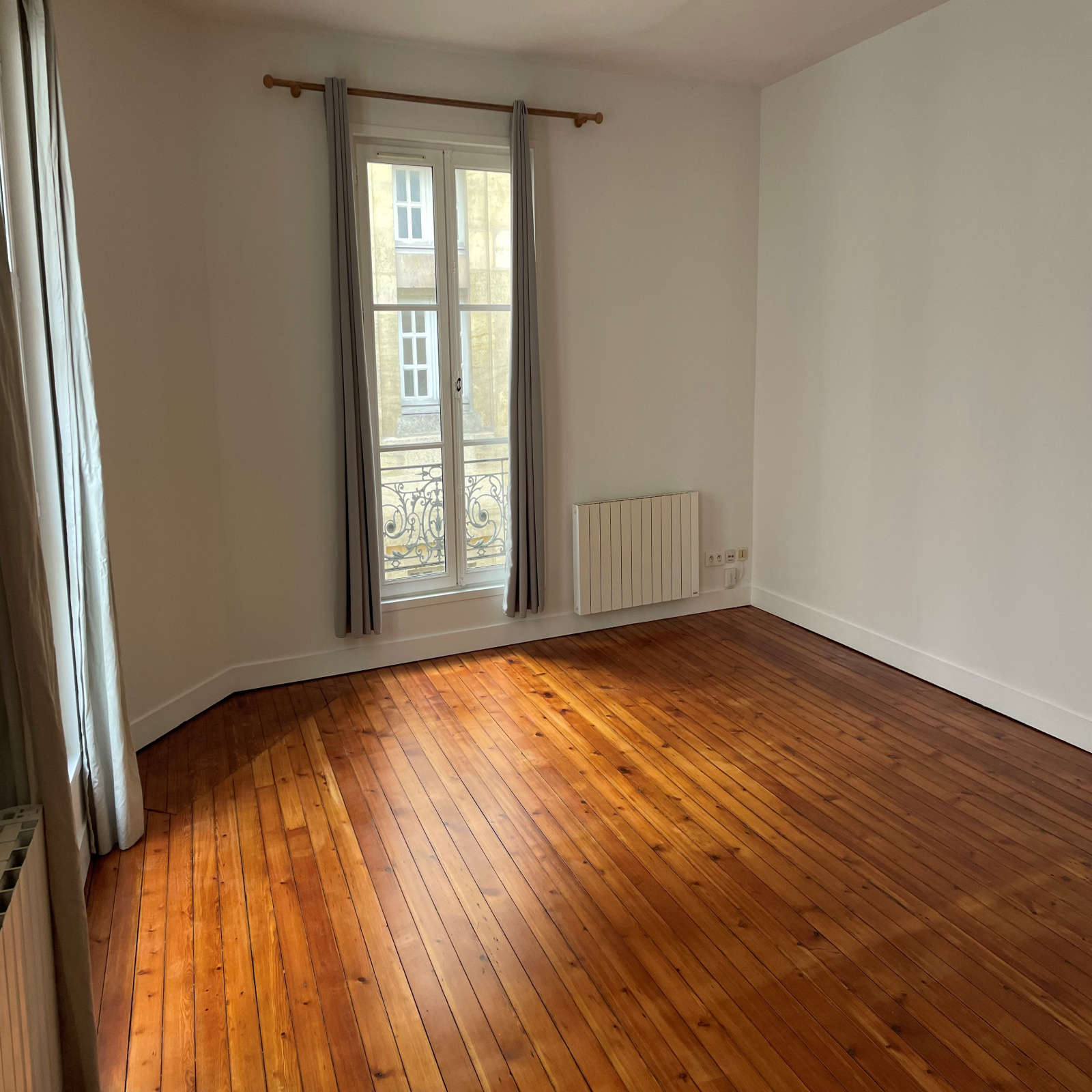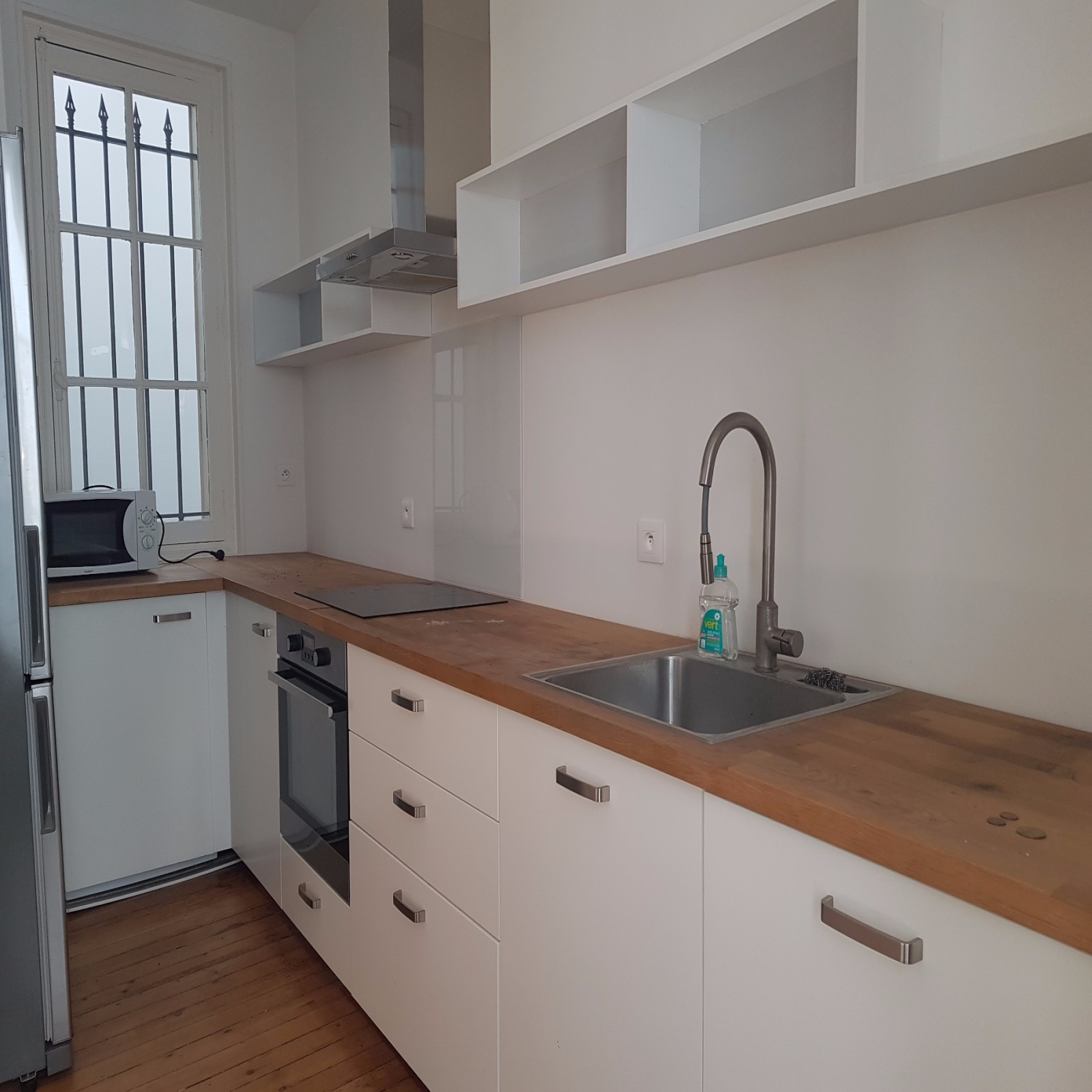 BORDEAUX CENTRE - Rue Margaux, dans un bel immeuble pierre, au 2ème étage et dernier étage, appartement de type 3, composé d'une entrée, d'un séjour avec une cuisine aménagée et équipée, 2 chambres avec placards dont une avec un coin dressing, une salle de bains, un wc séparé.