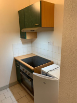 Séjour, cuisine séparée et équipée, chambre et salle de bains avec wc